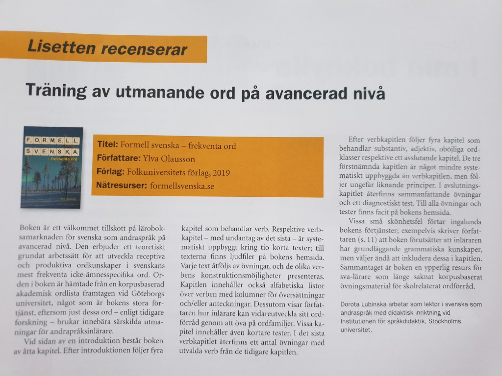 Äntligen har jag ett rykande färskt exemplar av mitt senaste läromedel i min ägo. Titeln Formell svenska – frekventa ord låter kanske inte så kul, men ett väl utvecklat ordförråd är absolut nödvändigt för att förstå innehållet i faktatexter, läromedel, tidningar etc.