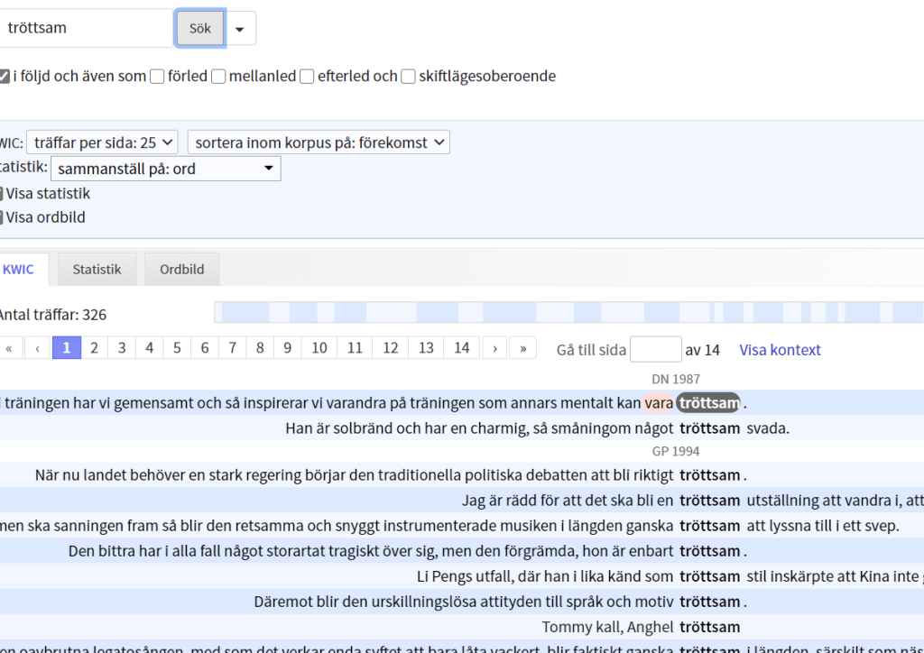 5. Nu kommer massor med exempelmeningar där tröttsam finns med: