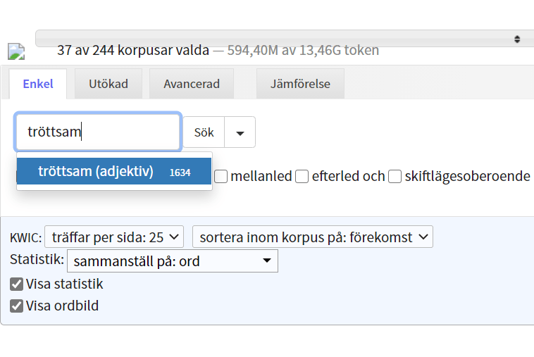 2. Alla loggar in på: https://spraakbanken.gu.se/korp/.