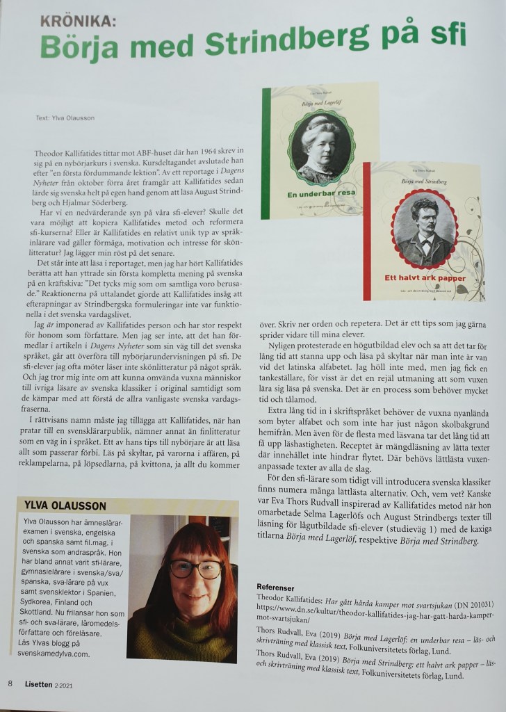 Lisetten 2:2021 med tema LÄSA har lämnat tryckpressarna och hamnat i mitt postfack. För den som inte känner till det är Lisetten en medlemstidning. Det är lätt och billigt att bli medlem i Svariks. Om du är yrkesmässigt engagerad i svenska som andraspråk är du också välkommen att bidra till innehållet i tidningen.